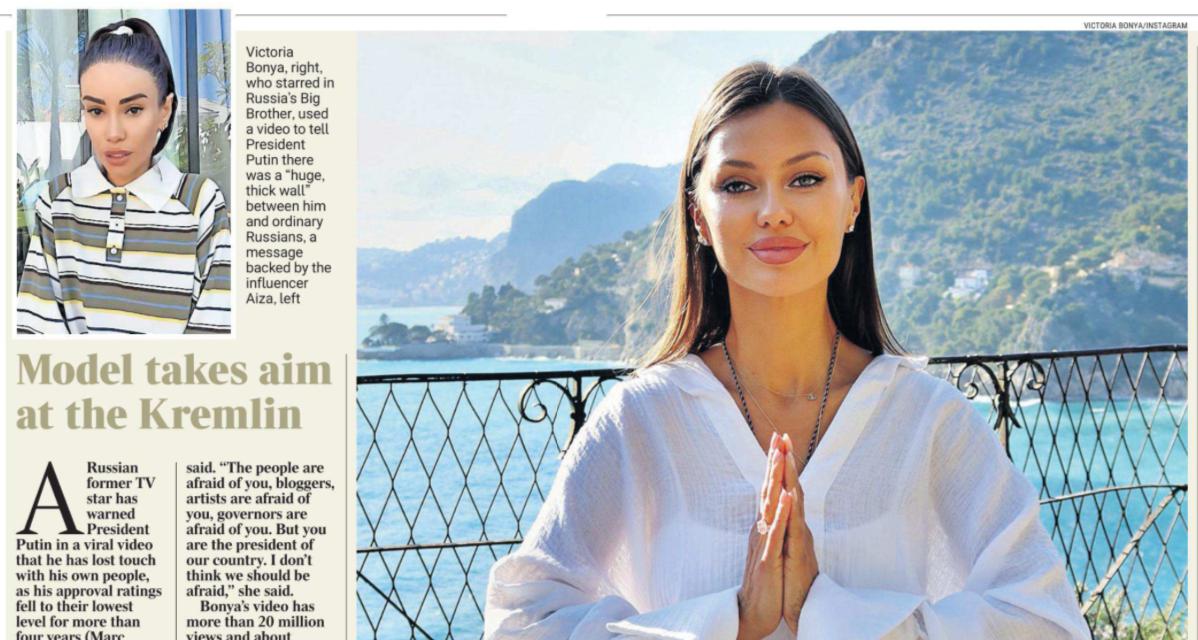 Блогерша Боня, доселе неизвестная западным СМИ, моментально стала там очень популярной. Сегодня The Times публикует большую статью о ней под заголовком «Модель целится в Кремль». Как вы понимаете, речь о ее нашумевшем видеообращении к Путину «от имени народа, который об этом не просил».