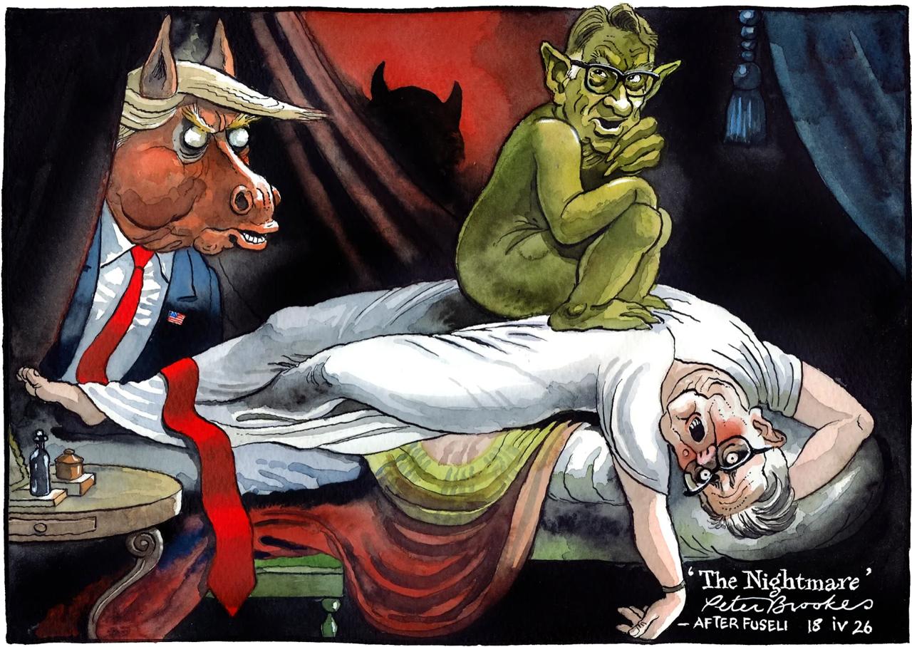 «Ночной кошмар» Кира Стармера. The Times представила, что британскому премьеру в страшных снах являются ужасные существа — Трамп и лорд Мендельсон, из-за которого Стармера сейчас могут уволить.