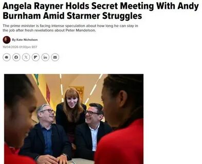 Переворот в Лондоне. Заговорщики в стане лейбористов готовятся свергать (https://www.huffingtonpost.co.uk/entry/angela-rayner-keir-starmer-andy-burnham_uk_69e4b821e4b0555d213c7a1b) Кира Стармера, причём в самое ближайшее время. Бывшая вице-премьера Анджела Рэйнер провела закулисные переговоры с мэром Манчестера Энди Бёрнамом, они оба главные оппоненты Стармера (https://t.me/britishpolitics/5589) среди лейбористов.